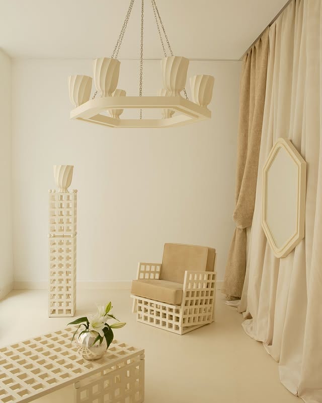 Their latest "TRAMA" collection for Monde Singulier is a bold mix of modern and classical influences, turned into sculptural furniture and lighting. With lacquered wood in soft oyster white, the pieces play with geometric shapes, negative space, and striking details. A perfect balance between function and artistic expression. I’m excited if we’ll see more collectible design pieces from them in the future.